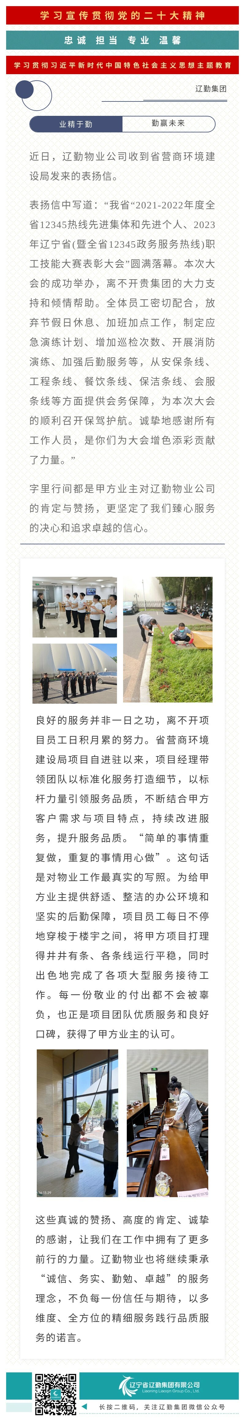 主題教育|敬業(yè)奉獻(xiàn),“信”任滿載 ——遼勤物業(yè)省營(yíng)商環(huán)境建設(shè)局項(xiàng)目喜獲表?yè)P(yáng)信