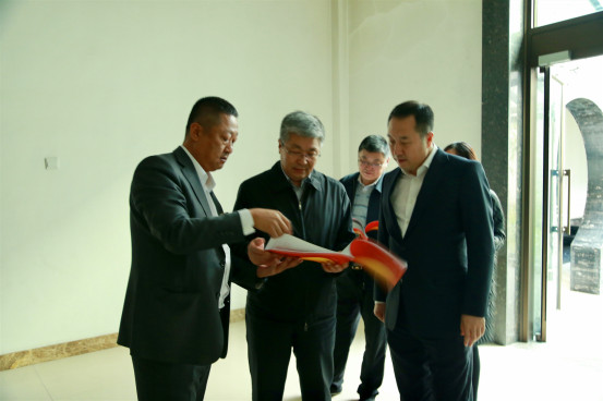 在遼勤集團黨委常委、副總經(jīng)理孫勇同志(右一)陪同下,省國資委黨委副書記項鴻林(中)認(rèn)真了解集團黨校建設(shè)計劃