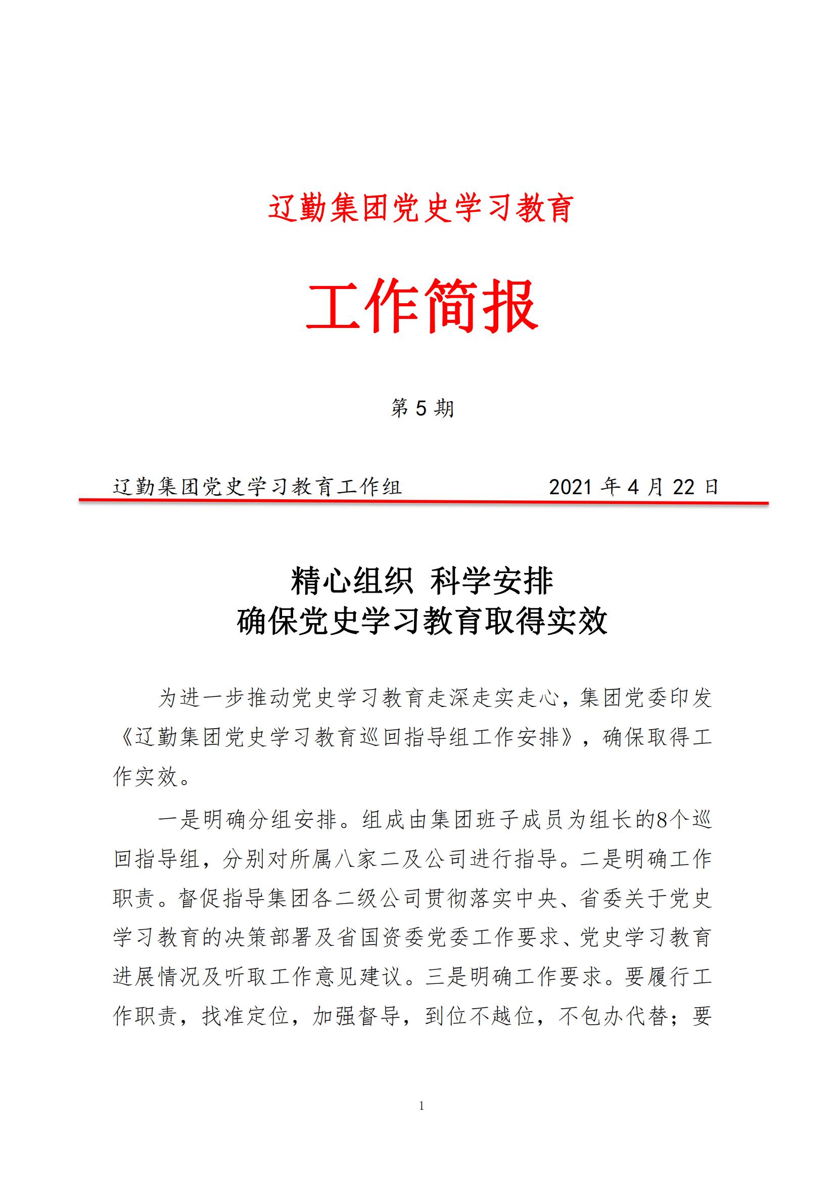 遼勤集團(tuán)黨史學(xué)習(xí)教育 工作簡報 第 5 期