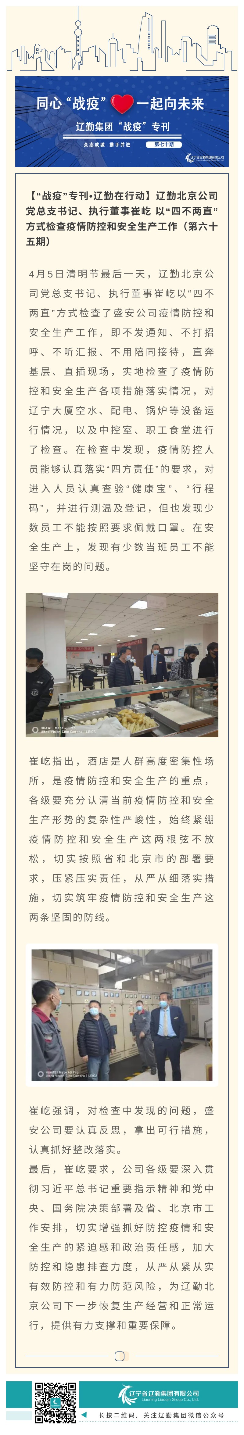 【“戰(zhàn)疫”???遼勤在行動】遼勤北京公司黨總支書記、執(zhí)行董事崔屹 以“四不兩直”方式檢查疫情防控和安全生產(chǎn)工作(第六十五期)