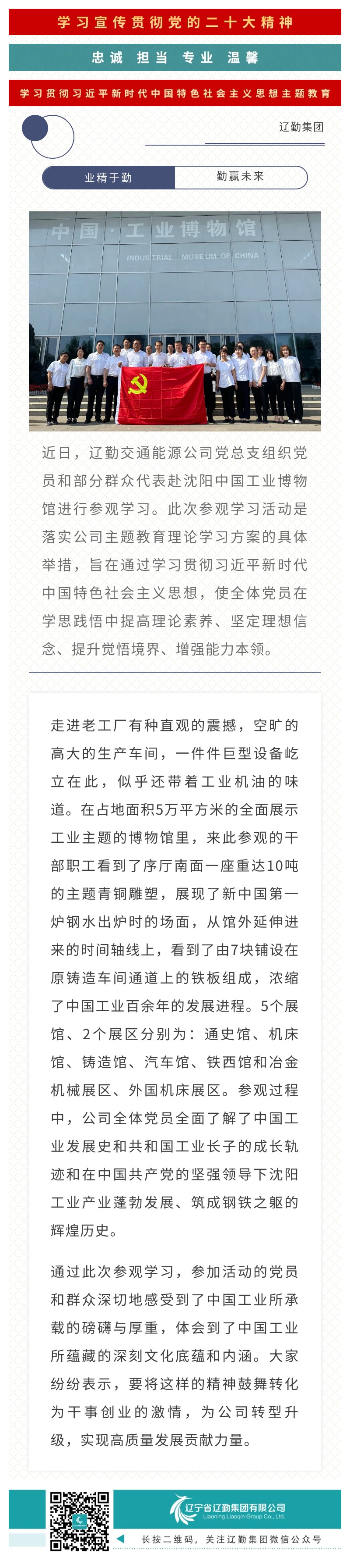 主題教育|感受老工業(yè)基地的力量 遼勤交通能源公司主題黨日走進中國工業(yè)博物館