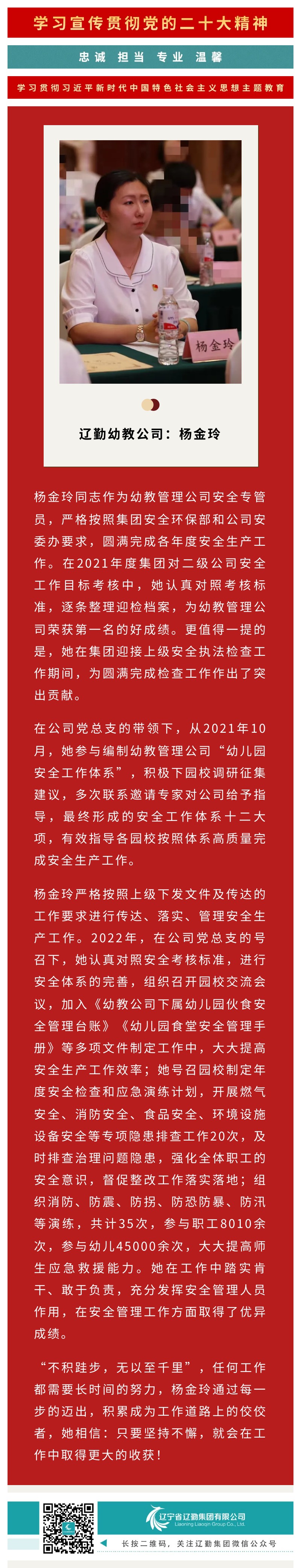 【踐行工匠精神】安全生產(chǎn)標(biāo)兵—楊金玲