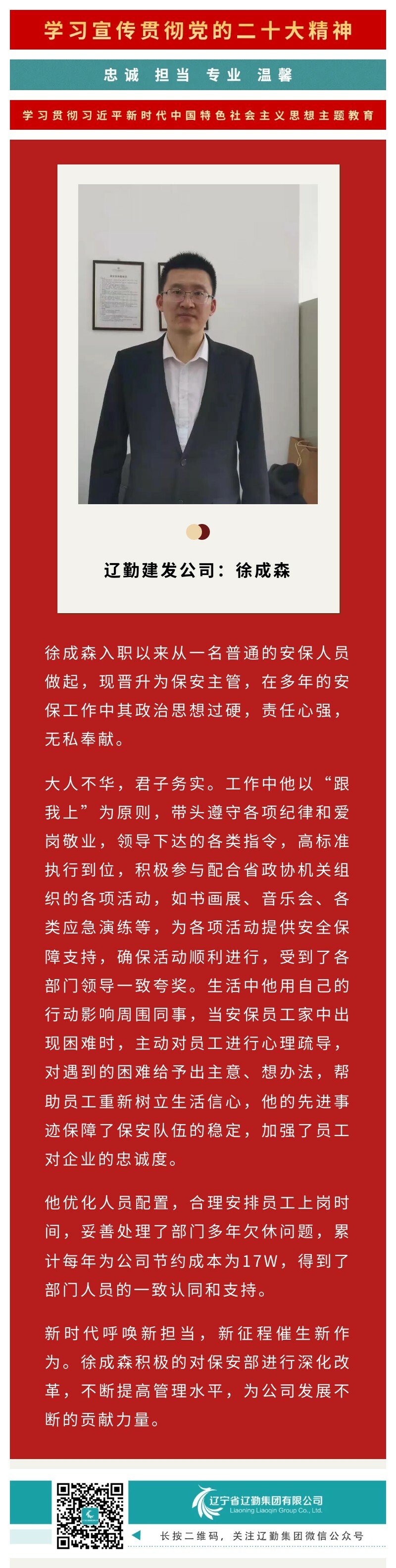 【踐行工匠精神】管理創(chuàng)新標兵——徐成森
